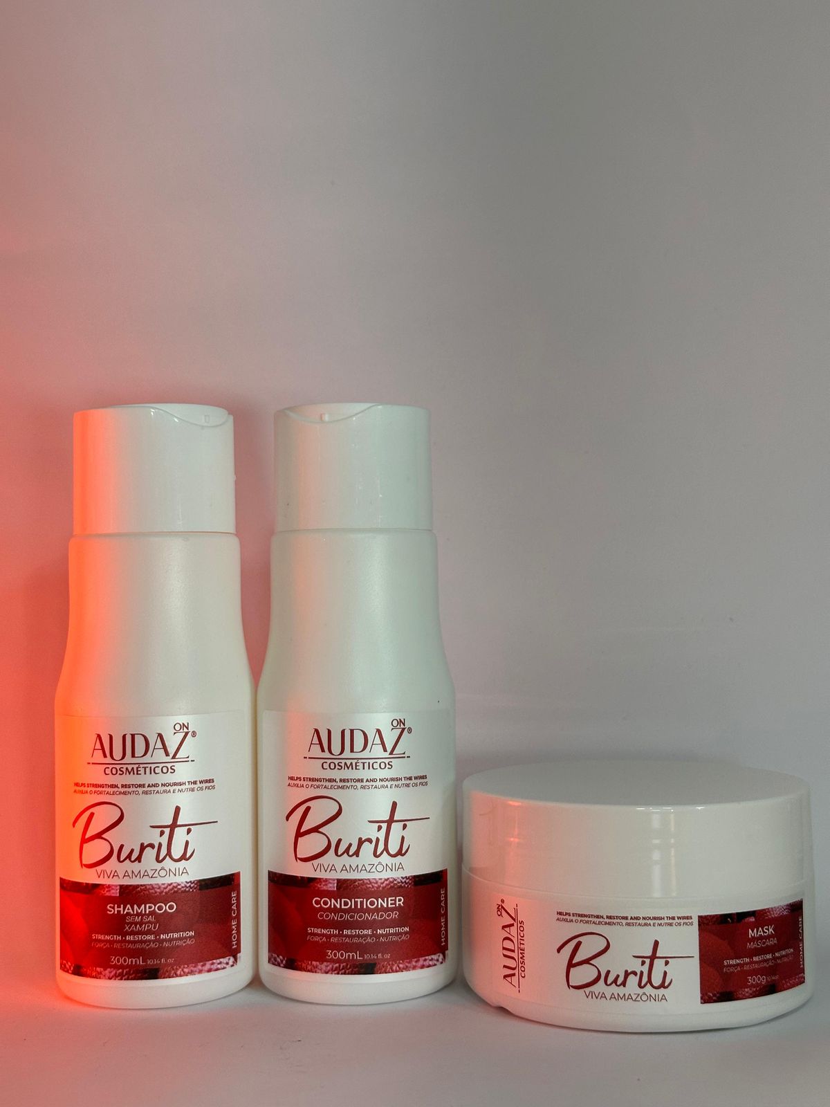 A linha Buriti Viva Amazônia da Audaz Cosméticos foi elaborada a partir do buriti, uma das plantas mais importantes a Amazônia, por conter muita água e vitaminas. Potente hidratante capilar, devolve o brilho natural dos fios e aumenta a oxigenação do couro cabeludo deixando os fios mais macios e cheios de vida.